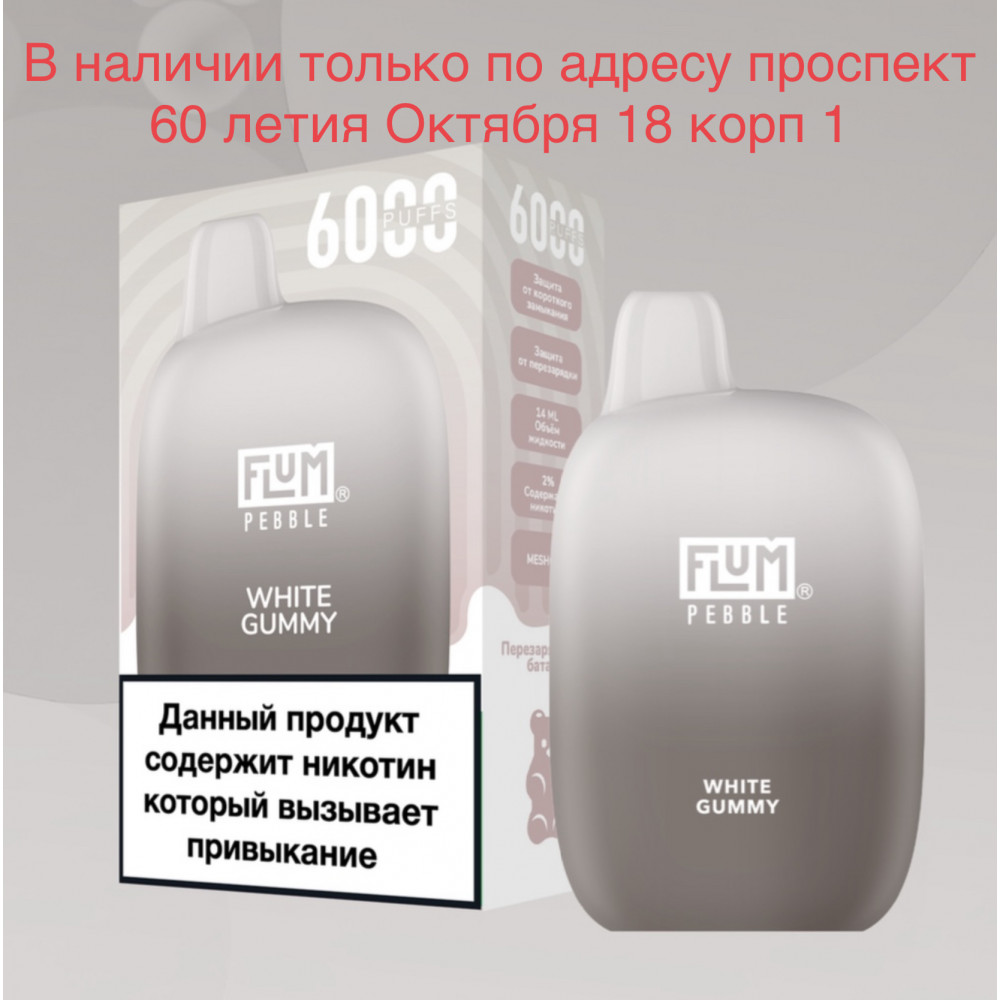 FLUM видыPebble FLUM вкусыБелые Мармеладные Мишки Гамми FLUM количество в блоке10 шт