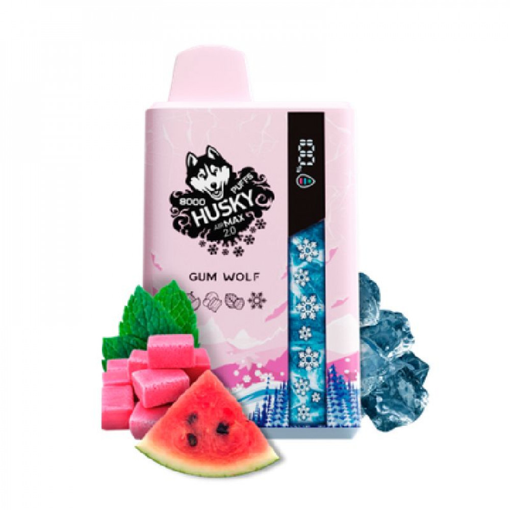 • Электронная сигарета Хаски Аир Макс 2.0 8000 Арбуз Жвачка Ментол (Husky Airmax 2.0 8000 Gum wolf)
